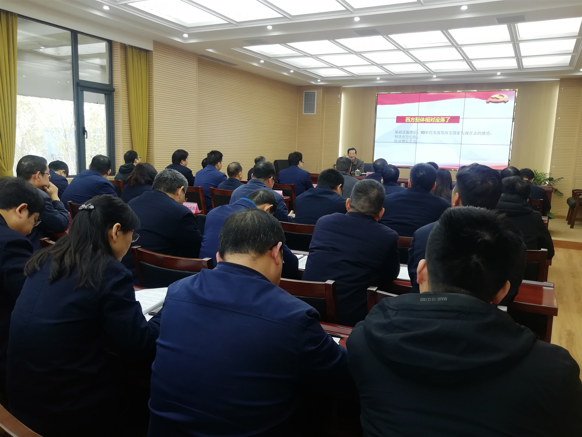 為認(rèn)真學(xué)習(xí)貫徹黨的十九屆五中全會精神,切實增強同力水泥豫西運營區(qū)全體員工的思想自覺、政治自覺和行動自覺,把十九屆五中全會的各項決策部署和工作要求落到實處,12月3日,黃河同力、騰躍同力舉辦黨委理論學(xué)習(xí)中心組(擴大)集體學(xué)習(xí)報告會,邀請洛陽市委十八大、十九大精神宣講團成員、市委黨校黨史黨建教研部副教授趙家國作題為“歷史交匯點上的宏偉藍圖——黨的十九屆五中全會精神解讀”主題報告。黃河同力、騰躍同力黨委班子成員、各支部書記、中層干部和各支部支委代表40余人等聽取了報告。