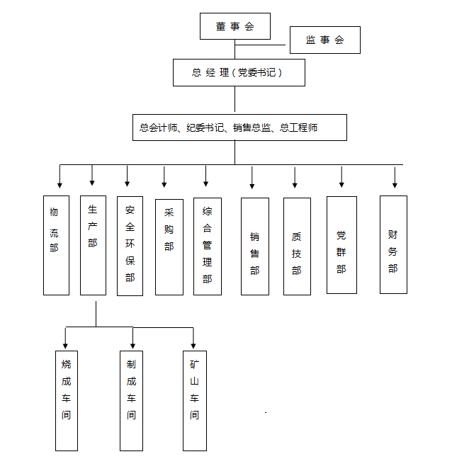 三門峽騰躍同力水泥有限公司位于河南省澠池縣境內(nèi),地處晉、陜、豫三省交匯處,緊靠連霍高速公路、310國道,交通便利。公司總面積274175.46m2,公司類型為一人有限責任公司。公司實行董事會領(lǐng)導下的總經(jīng)理負責制,下設(shè)綜合管理部、生產(chǎn)部、財務(wù)部、采購部、市場部、銷售部、物流部、質(zhì)量技術(shù)部、安全環(huán)保部、黨群部。生產(chǎn)部下設(shè)燒成車間、制成車間、礦山車間。